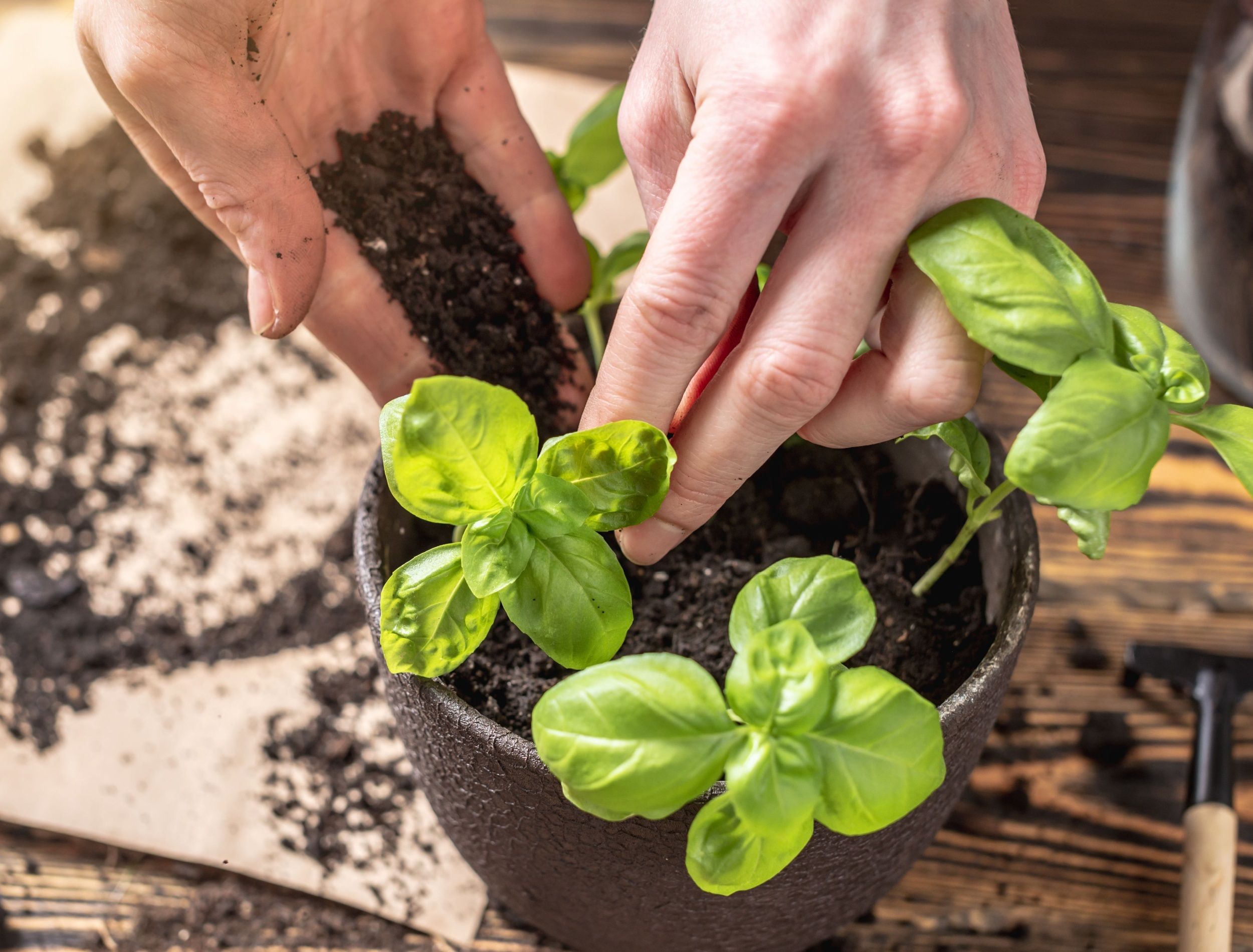 If you’ve opted to start from seed, follow these steps to sow basil seeds indoors successfully: