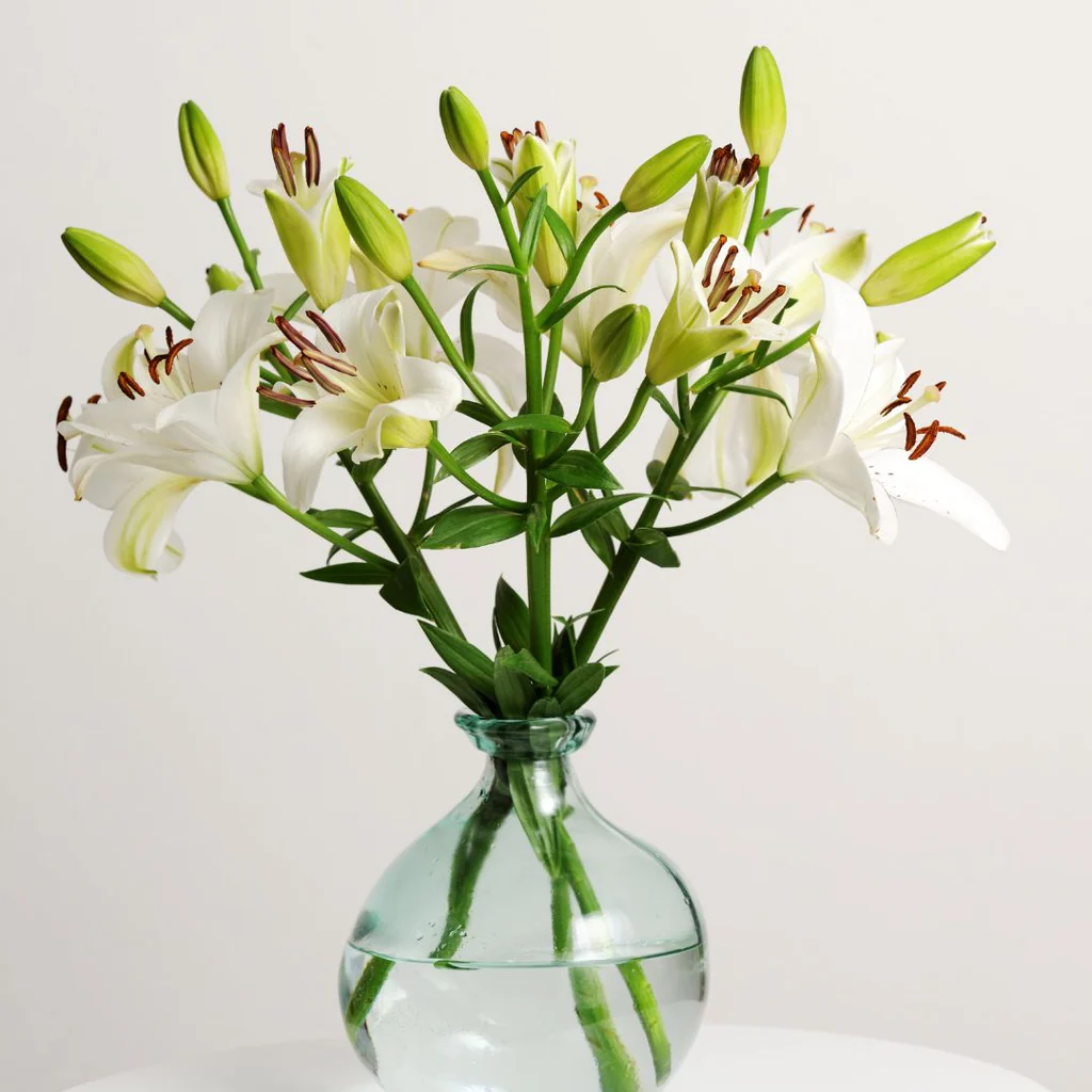 • Cleanliness is Key: Before placing your lilies in the vase, remove any leaves that will fall below the water line. Submerged foliage can decompose and shorten the vase life.