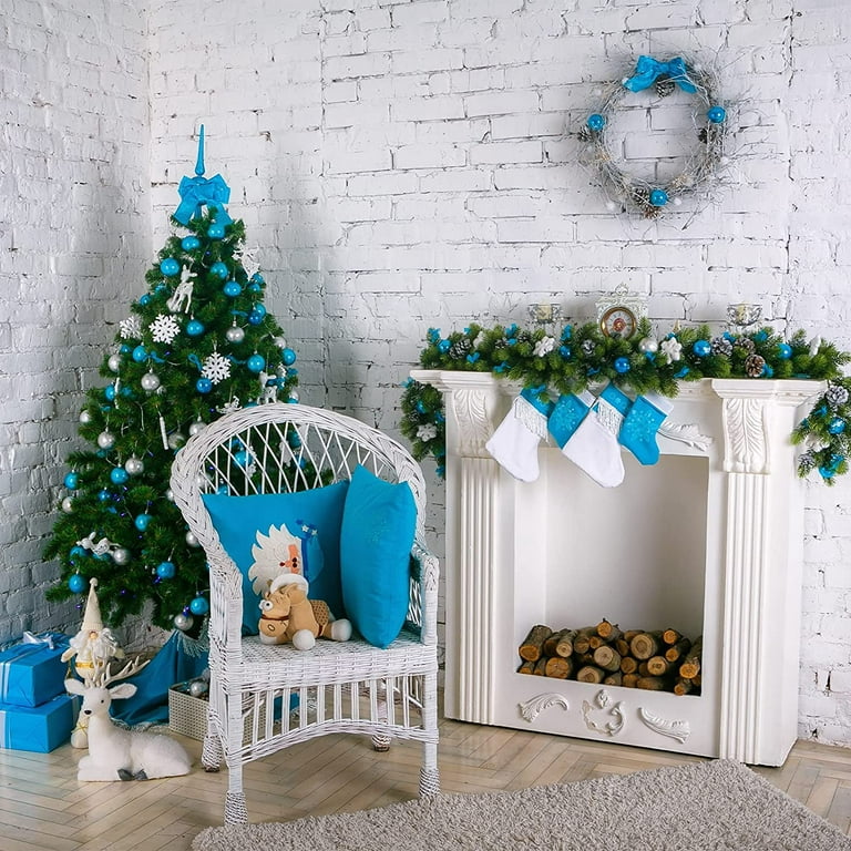 • Mantel Marvels: Drape your mantel with a crisp white garland accented with blue and silver ribbons. Nestle in white candles adorned with blue snowflakes or pinecones for a touch of winter elegance.