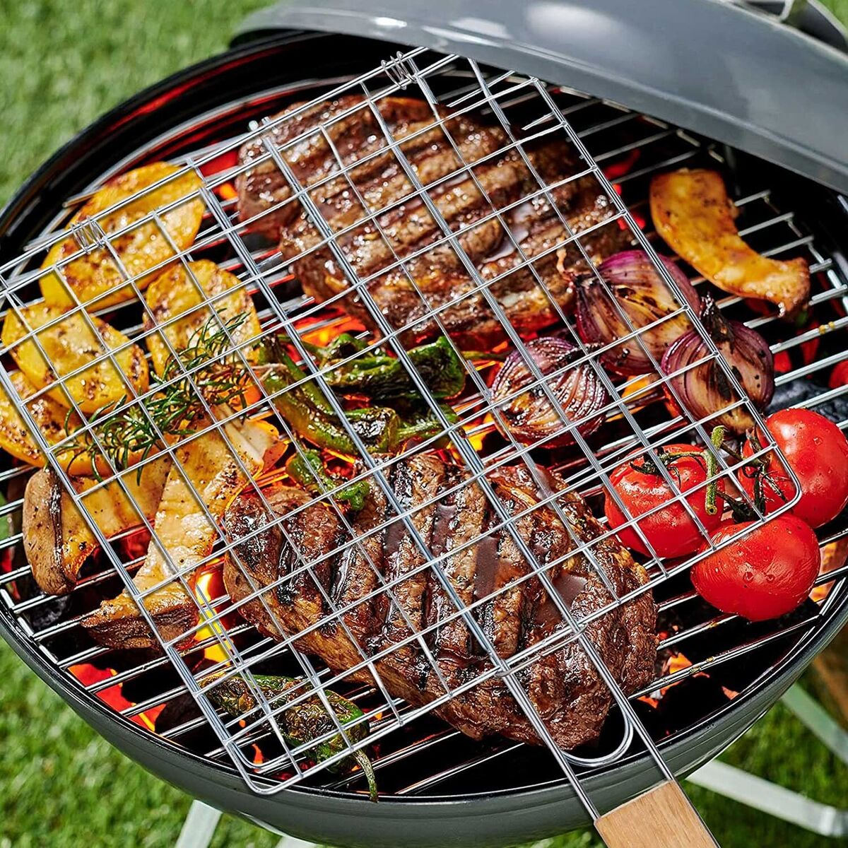 Vegetable Baskets: Vegetable baskets often have smaller mesh openings to prevent smaller vegetables from falling through, ensuring even cooking and preventing them from getting lost in the coals.
